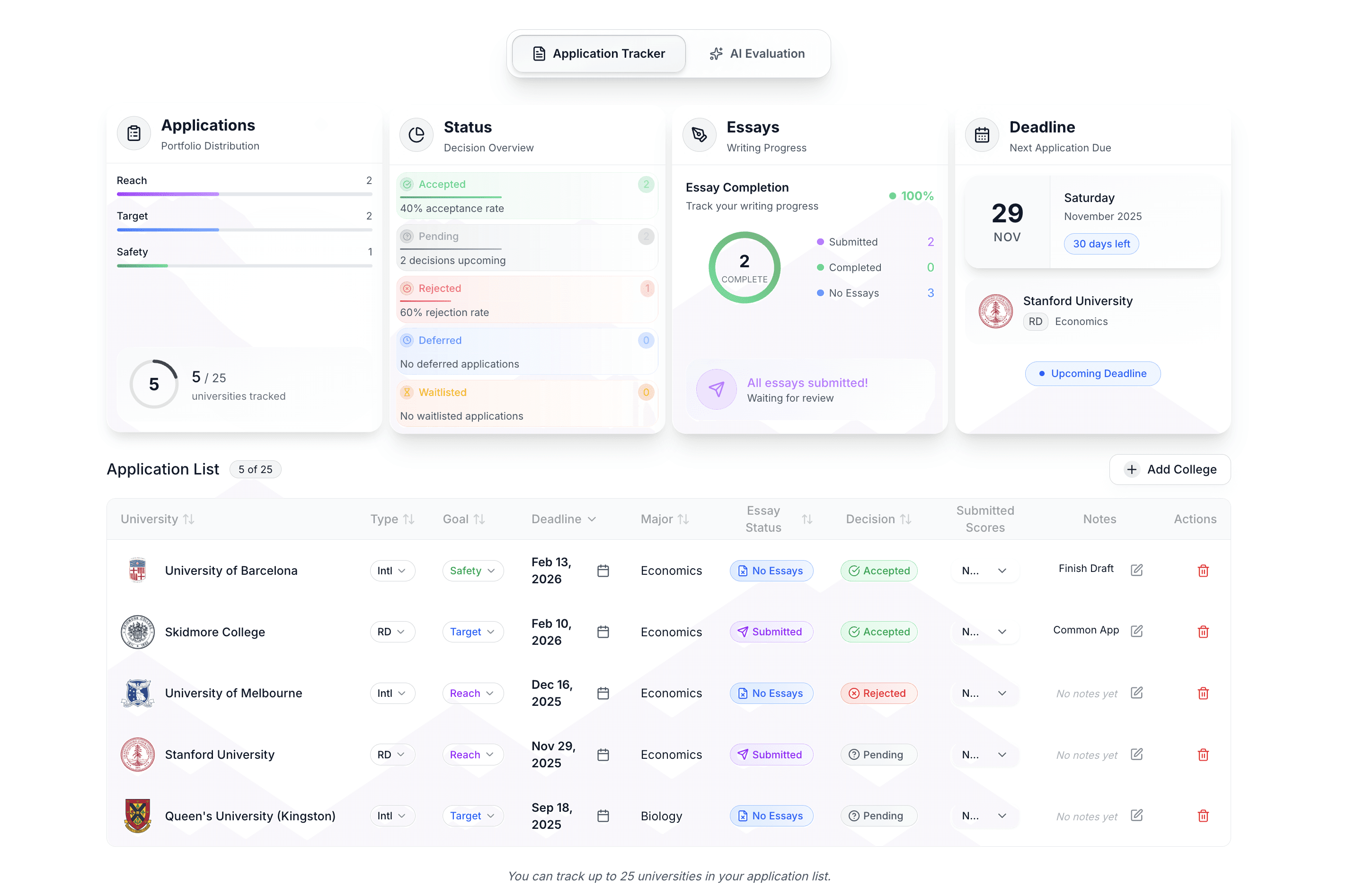 Application Tracker to organize all your universities in one place.
