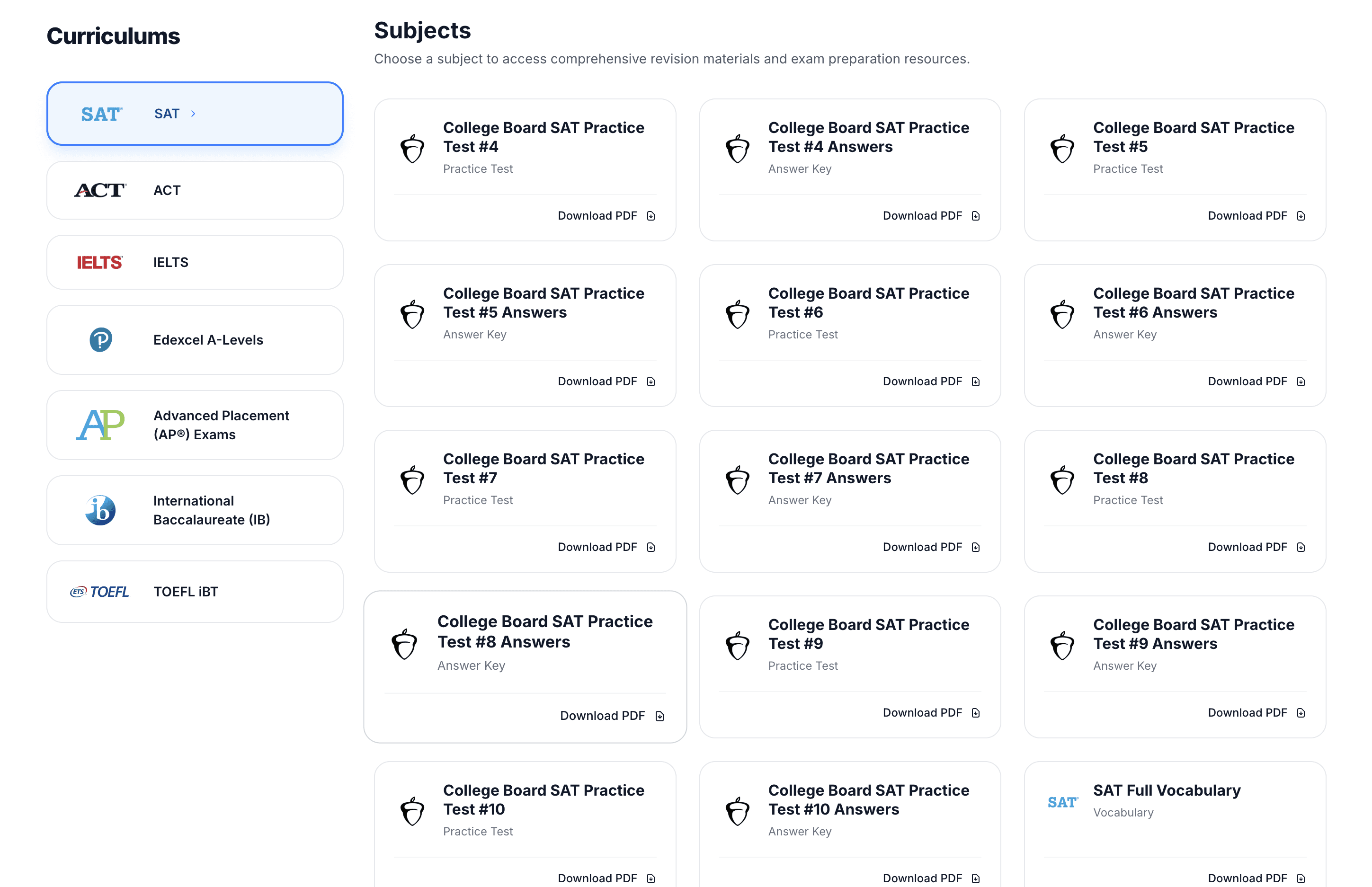 Access revision notes, practice tests, and prep material for SAT, ACT, TOEFL, IELTS, APs, IBs, and A-Levels - all in one place.