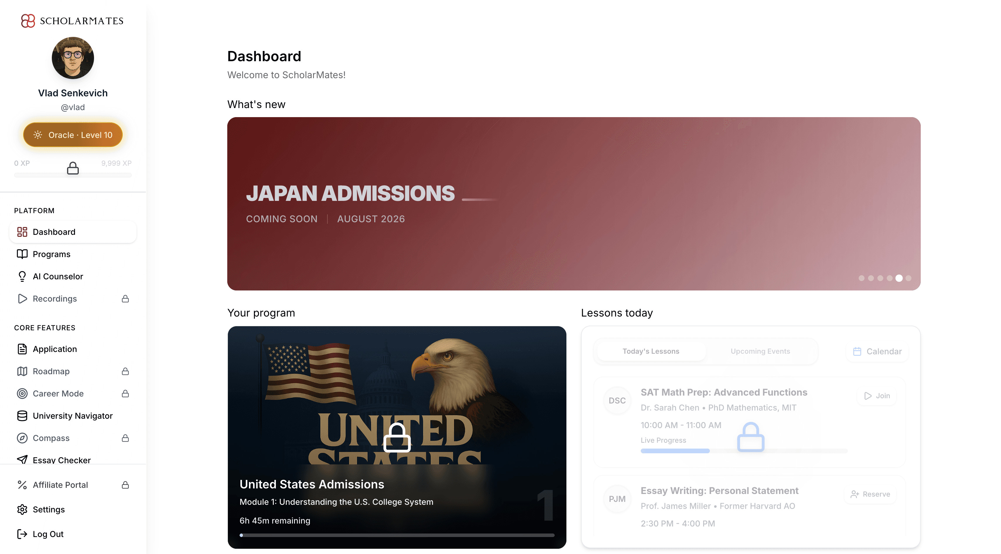 Everything students need to apply: essays, universities, extracurriculars, scholarships — all in one place. No overpriced consultants. No fragmented search.