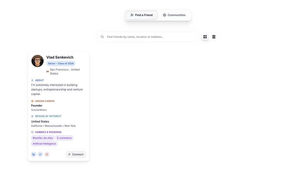 Join thousands of students using ScholarMates to track applications, boost essays, discover universities, and win scholarships - all in one place. Whether you’re writing your personal statement, searching for the right fit university, or connecting with accepted students, ScholarMates has you covered.